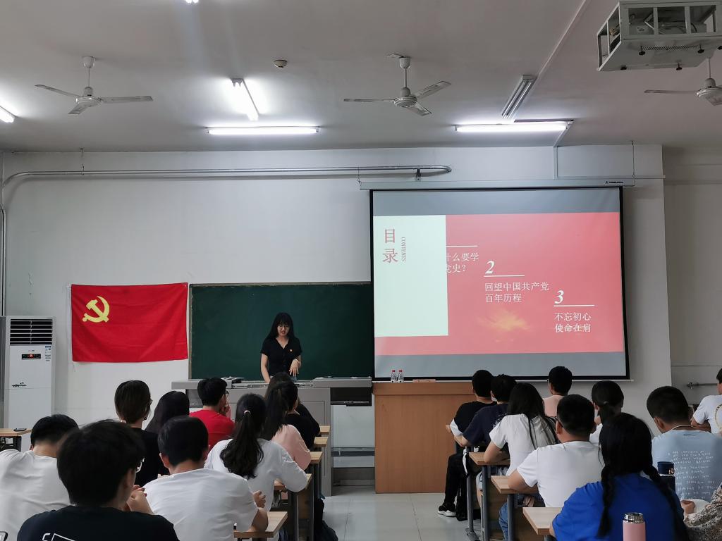 宣讲会上,白晓菲同志围绕“学‘百年党史’,践‘初心使命’”主题,从为什么要学党史、回望中国共产党百年历程、不忘初心使命在肩三大板块进行了系统的、详细的讲解;同时从中国共产党领导中华民族“站起来”、中国共产党领导中华民族“富起来”、中国共产党领导中华民族“强起来”三个阶段对中国共产党的百年峥嵘党史进行了梳理总结。白晓菲同志说,历史向我们证明,只有共产党才能救中国,只有社会主义道路才适合中国,只有坚持和发展中国特色社会主义才能实现中华民族的伟大复兴。她强调,作为祖国的未来,民族的希望,我们肩负着实现中华民族伟大复兴的历史重任,从百年党史中汲取养分,自觉做共产主义远大理想和中国特色社会主义共同理想的坚定信仰者和忠实实践者,我们要学好专业知识,努力增长自己的本领,以实现中华民族伟大复兴为己任,不辜负党的期望、人民期待、民族重托,不辜负我们这个伟大时代!