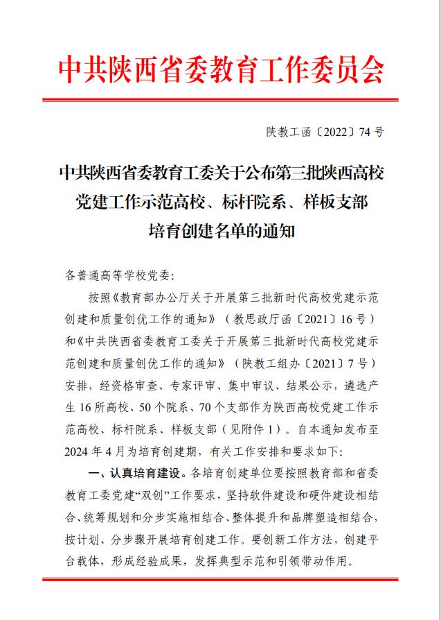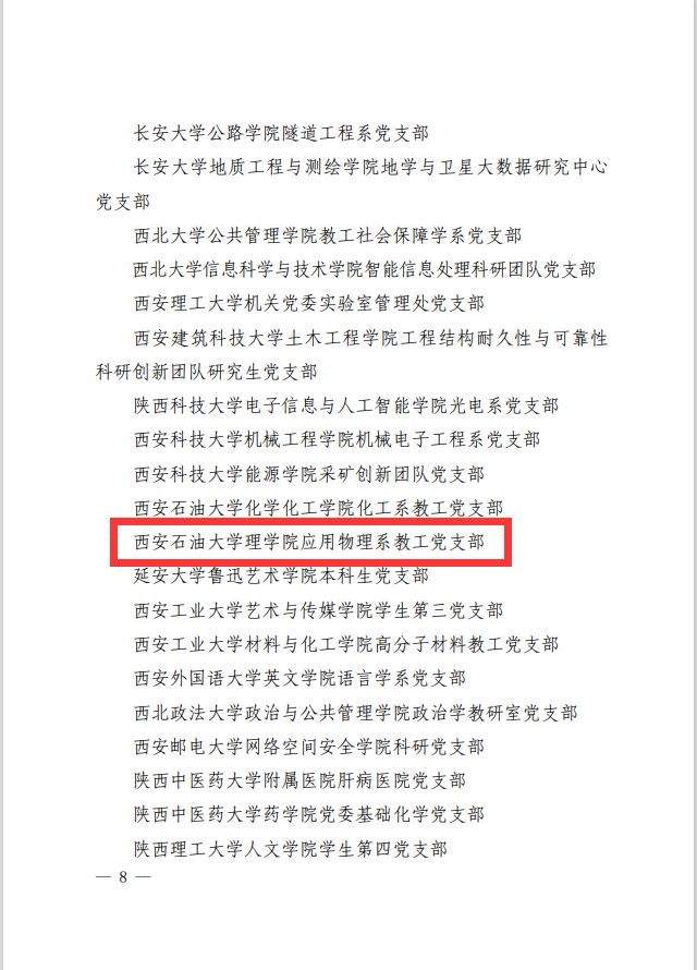 近日,中共陕西省委教育工委公布了第三批陕西高公司党建工作示范高校、标杆院系、样板支部培育创建单位名单。公司应用物理系教工党支部经过层层选拔推荐,成功入选“全省党建工作样板支部”培育创建单位。