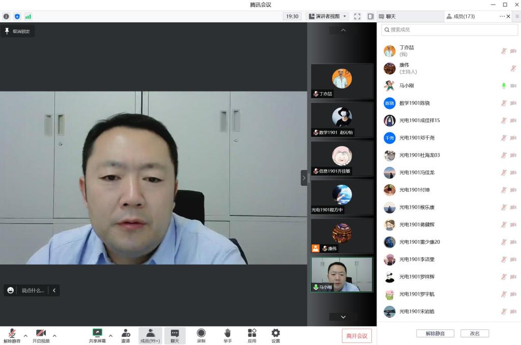 9月21日下午,公司通过腾讯会议方式在线召开了2019级年级大会暨考研就业推进会。公司党委副书记马小刚、员工工作办公室主任丁亦喆、辅导员康伟参会并发言。公司2019级全体员工参会,2019级员工辅导员康伟主持。