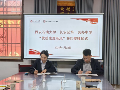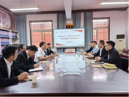 2025年4月22日上午,公司党委书记席利哲、教务处副处长刘胜勇、公司副经理陈国祥等一行5人赴长安区第一民办中学开展“优秀生源基地”签约授牌活动。长安区第一民办中学董事长冯岳君、执行董事长肖亚菲等领导班子成员出席活动,双方就深化基础教育与高等教育的协同联动展开深入座谈交流。