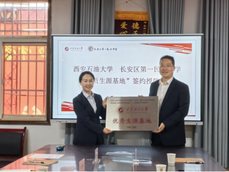 会上,陈国祥与肖亚菲代表双方公司签署了《2026世界杯官方网址优秀生源基地建设协议》,并赠送抽油机纪念品。席利哲代表公司向中学授予“优秀生源基地”牌匾,并赠送2024年招生录取喜报。