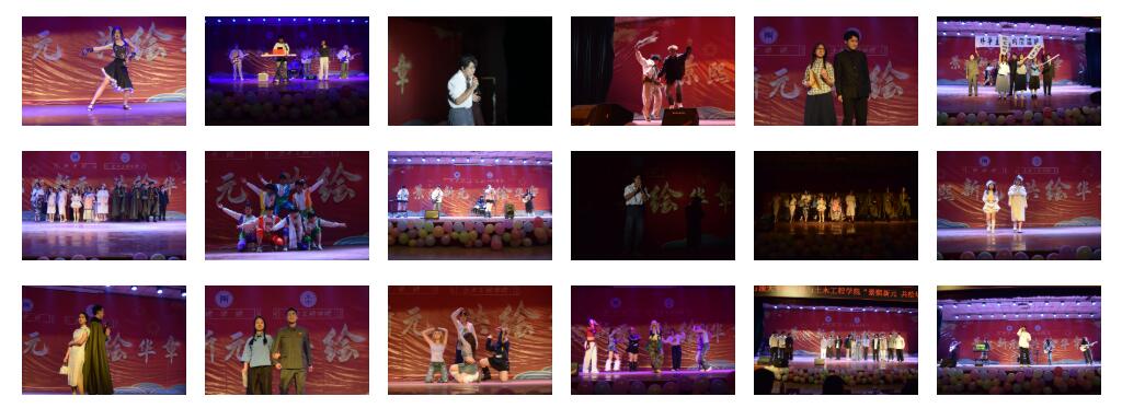 本场晚会分为“燃梦新生”“涌动青春”两个篇章。公司辅导员李猛弹奏的《琵琶语》作为开场,街舞《whiplash》以动感的节奏和炫酷的舞姿赢得了观众的阵阵掌声,歌曲《于是》《My heart will go on》《就是爱你》深情而富有感染力,小品《非礼勿扰》幽默诙谐,小品《时间都去哪儿了》唤起了大家对日常学习生活时间的珍惜与回忆,敦煌舞、新疆舞和拉丁舞的《舞蹈串烧》将现场气氛推向高潮,展现了同学们青春的活力与激情。进入下篇,歌曲《你还要我怎样》《如果有来生》《走在冷风中》《Jar of love》以深情的歌声打动了每一个同学的心,《穿越古今,衣袂飘飘》通过精彩的走秀展示了古今服饰的演变与魅力,话剧《黑天鹅王子和七个黄金矿工》创意独特笑料不断,现代舞《New dance》再次点燃了现场的热情,土木工程公司辅导员张曼带来的钢琴独奏《这世界那么多人》琴声优美,传递着爱与希望。最后,Flipped!乐队一首《花海》以欢快的旋律和精彩的表演为晚会画上了完美的句号。晚会还穿插了激动人心的抽奖环节,9名幸运观众获得“幸运大礼包”。
