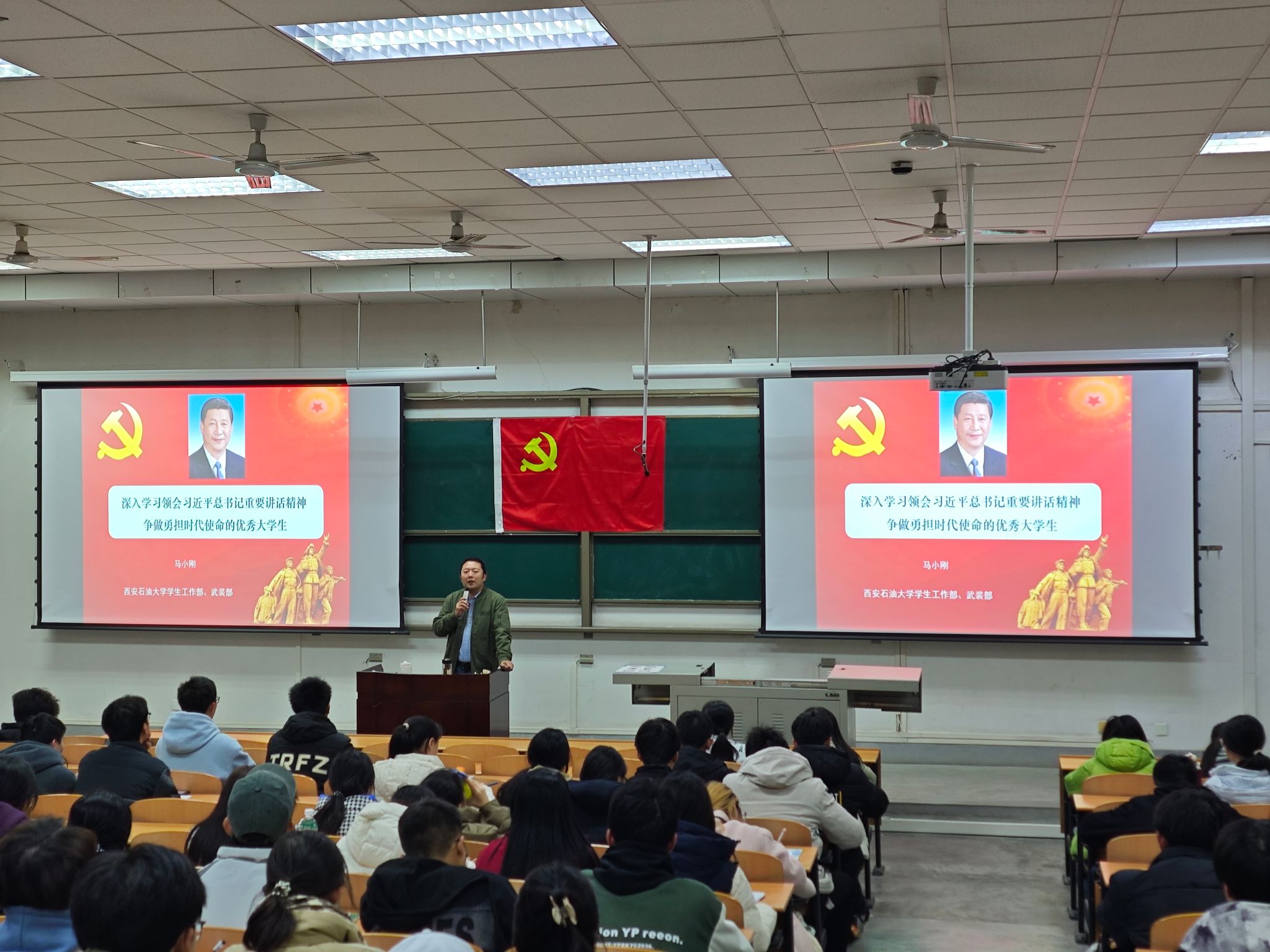 为加强入党积极分子的培养教育,提高入党积极分子的政治素质和理论水平,11月26日晚,公司、马克思主义公司、体育公司在鄠邑校区博览楼239教室联合举办了第十九期入党积极分子培训班第五讲。员工工作部、武装部副部长马小刚以《深入学习习近平总书记重要讲话精神 争做勇担时代使命的优秀老员工》为题应邀担任主讲。237名入党积极分子参加了学习。