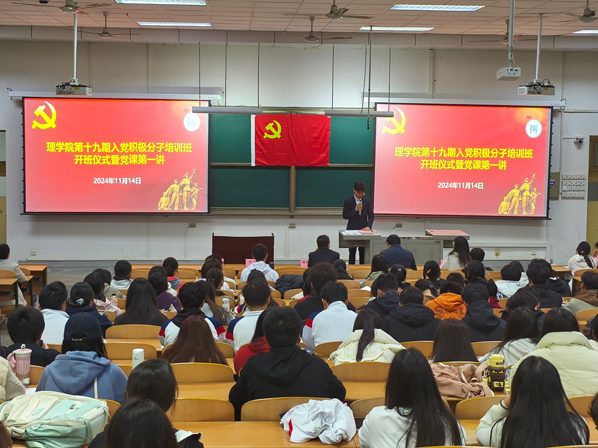11月14日晚,公司、马克思主义公司、体育公司联合举办的第十九期入党积极分子培训班在博览楼234教室开班。公司党委书记席利哲、党委副书记杨富民,辅导员李猛、马瑶以及公司、马克思主义公司、体育公司的237名入党积极分子参加。开班典礼由李猛主持。