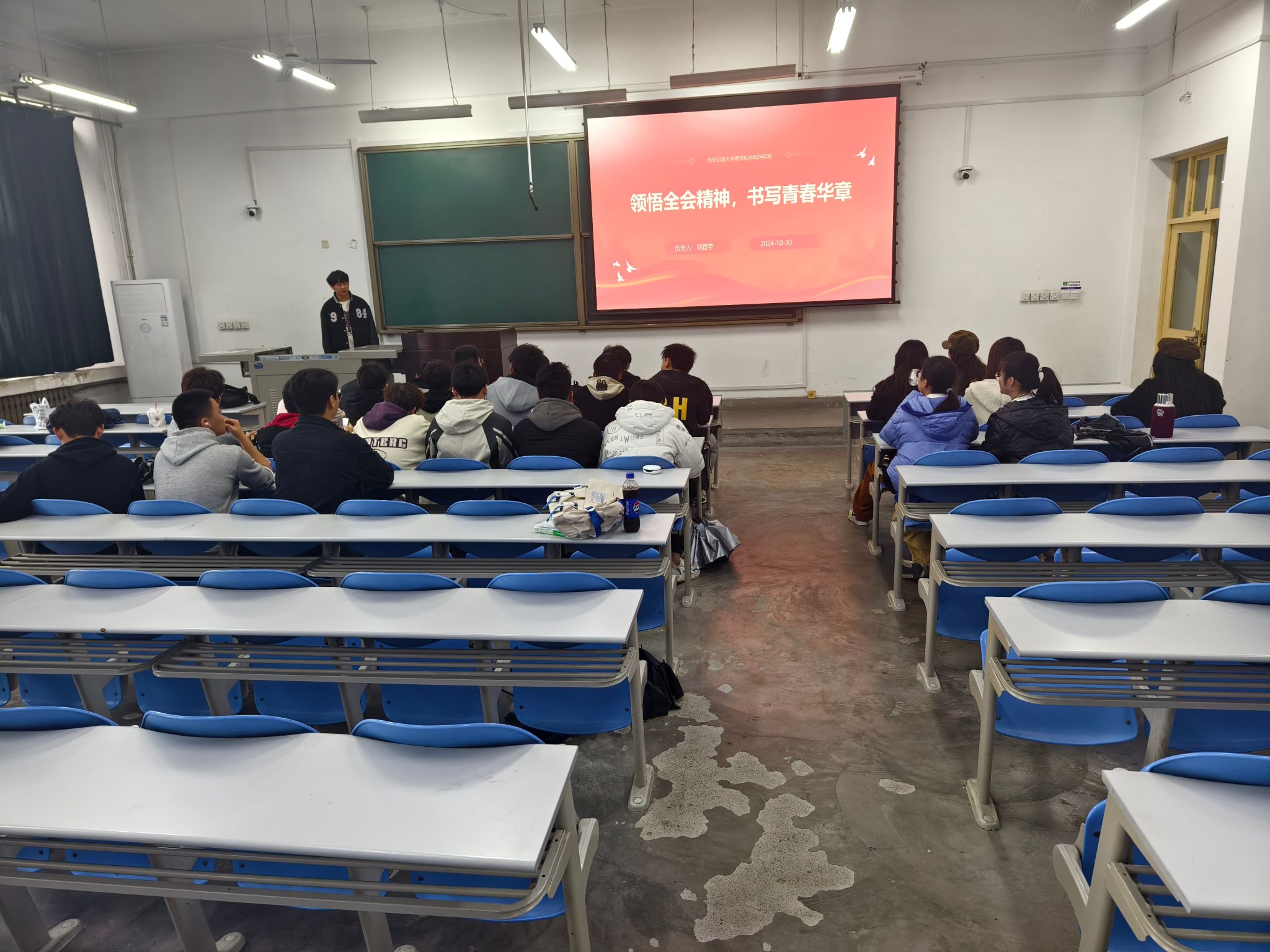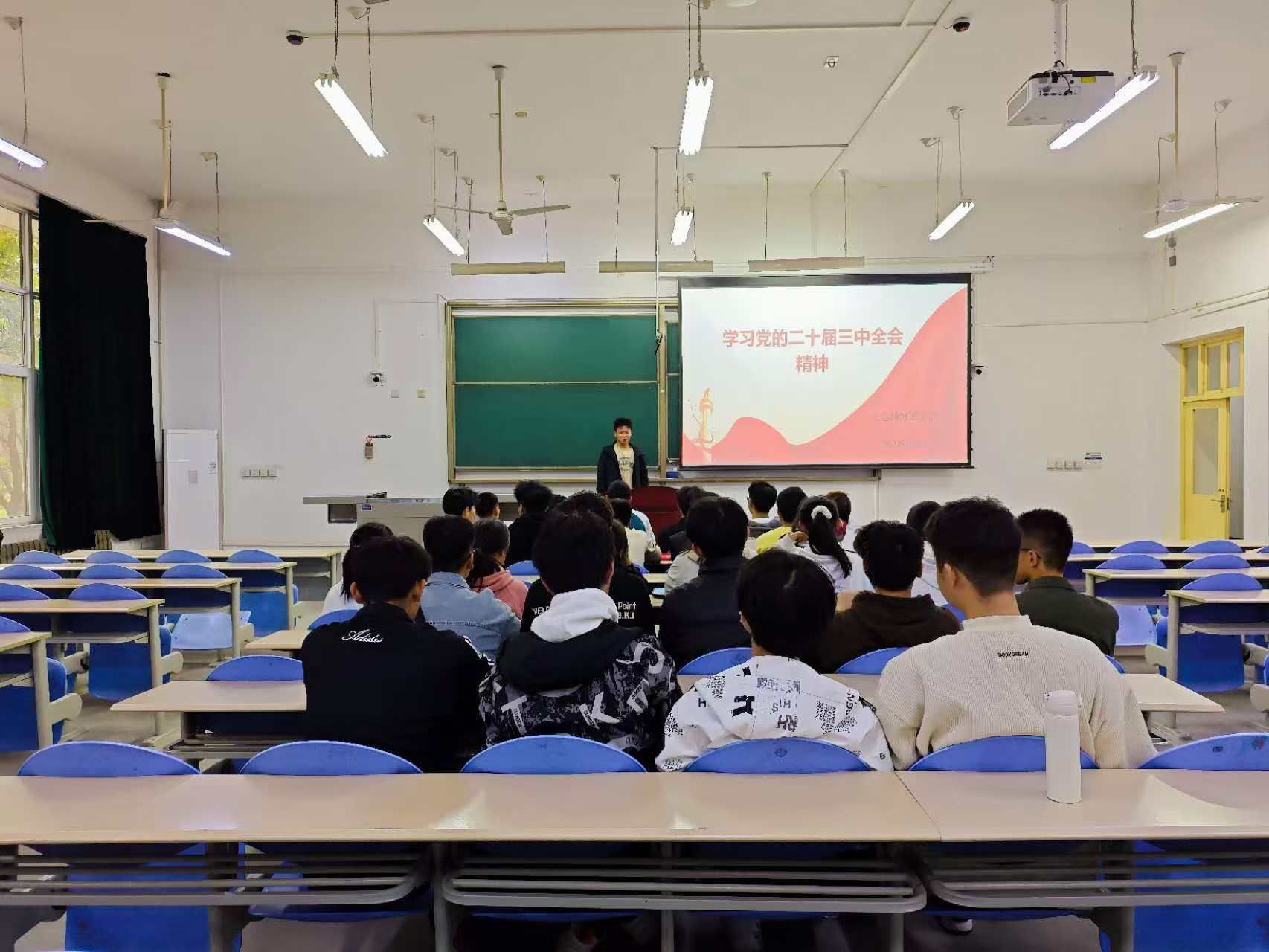 在活动中,各班主讲人通过视频资料回顾了历届三中全会的重要历程和成果,详细介绍了本次会议的背景、基本情况及重要意义,指出全会是在以中国式现代化全面推进中华民族伟大复兴的进程中召开的。主讲人从多个维度对全会精神进行了解读以及进一步全面深化改革的重大意义、指导思想、总体目标和重大原则等。剖析了会议提出的各项重大决策和部署,强调这些决策和部署对于推动中国式现代化、实现中华民族伟大复兴的重要意义。同时,结合当前国内外形势,分析了我们面临的新机遇和新挑战,并提出了应对挑战、把握机遇的策略。在讨论环节,同学们发言热烈,清晰地认识到新时代新青年肩负的历史责任。