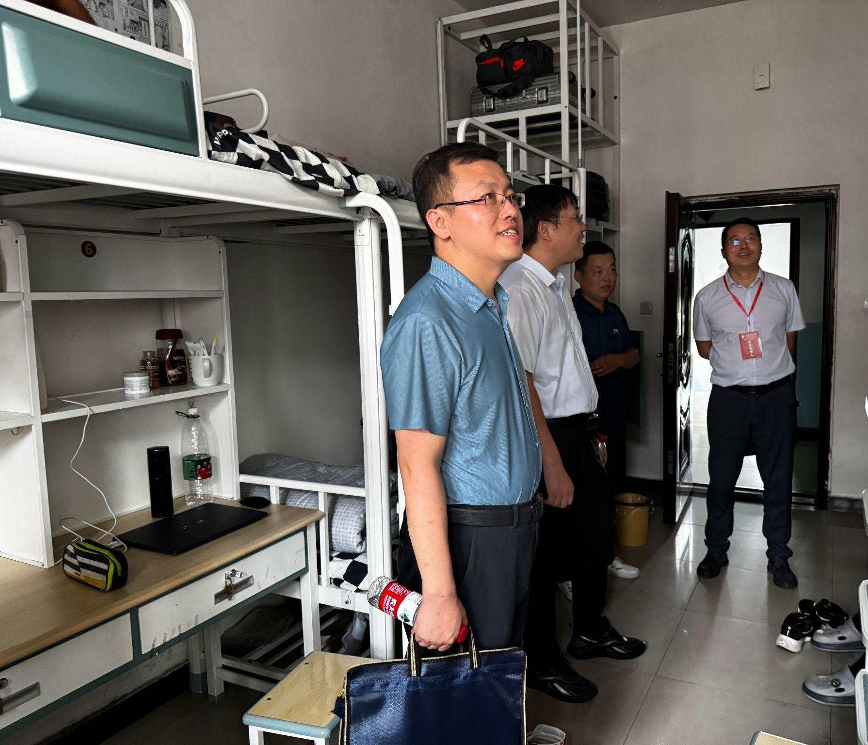 走访过程中,席利哲一行对新同学的到来表示热烈欢迎,针对迎新工作、宿舍环境、生活习惯、服务保障、未来学习和规划等与员工展开了深入交流,并对员工提出的困惑和问题给予了关心和解答,鼓励新生们要树立远大理想,珍惜大学时光,勤奋学习,勇于探索未知领域,全面提升自己的综合素质和能力水平。各位老师还提醒新生要注意用电安全、防火防盗等事项,并鼓励大家相互尊重、相互关心、相互包容、相互帮助,共同营造一个和谐、温暖、安全、舒适的宿舍环境。最后,席利哲一行还与宿管工作人员就加强管理、优化服务、积极回应员工的关切和诉求等方面进行了深入的沟通交流。