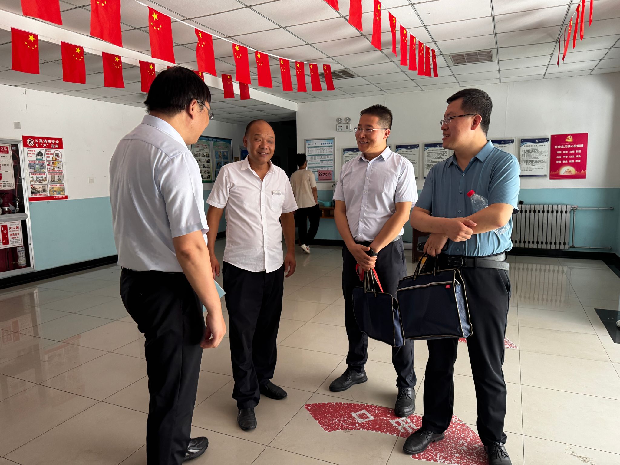 为切实了解新生对老员工活的期待和心声,帮助新生更好更快地融入新集体、新环境、新生活,9月1日下午,公司党委书记席利哲、党委副书记杨富民、副经理折延宏、辅导员庞波和马瑶深入新生宿舍,进行了一次温馨而细致的走访慰问活动。