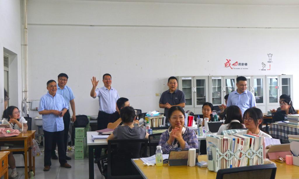 为了深入了解暑期考研留校员工的思想、学习和生活状况,切实做好留校员工的安全管理和教育服务工作,7月24日上午,公司党委书记席利哲,经理傅海威,副书记杨富民,副经理陈国祥,教师代表张旋,辅导员庞波一行前往鄠邑校区考研自习室开展了慰问活动,为留校员工送去了温暖与关怀。