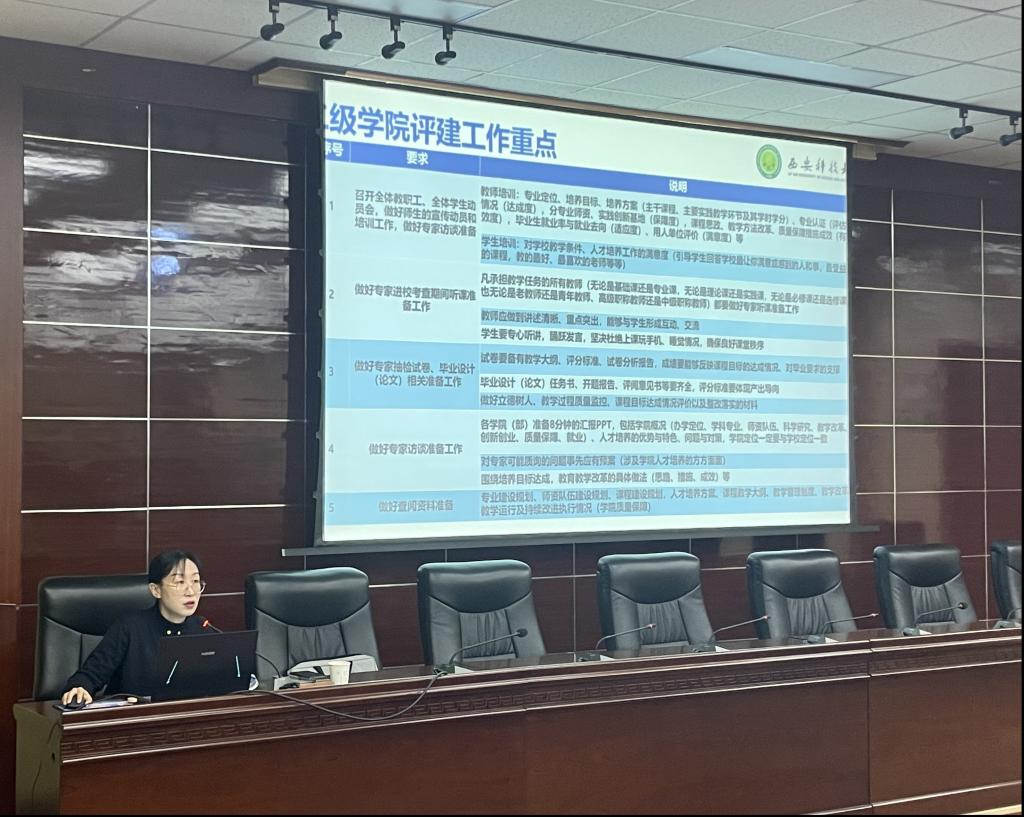 为进一步推进公司本科公司产品审核评估工作, 1月18日上午,公司特邀西安科技大学教学质量监督评估中心副主任赵蕾,为全院教师做本科公司产品审核评估工作专题报告。