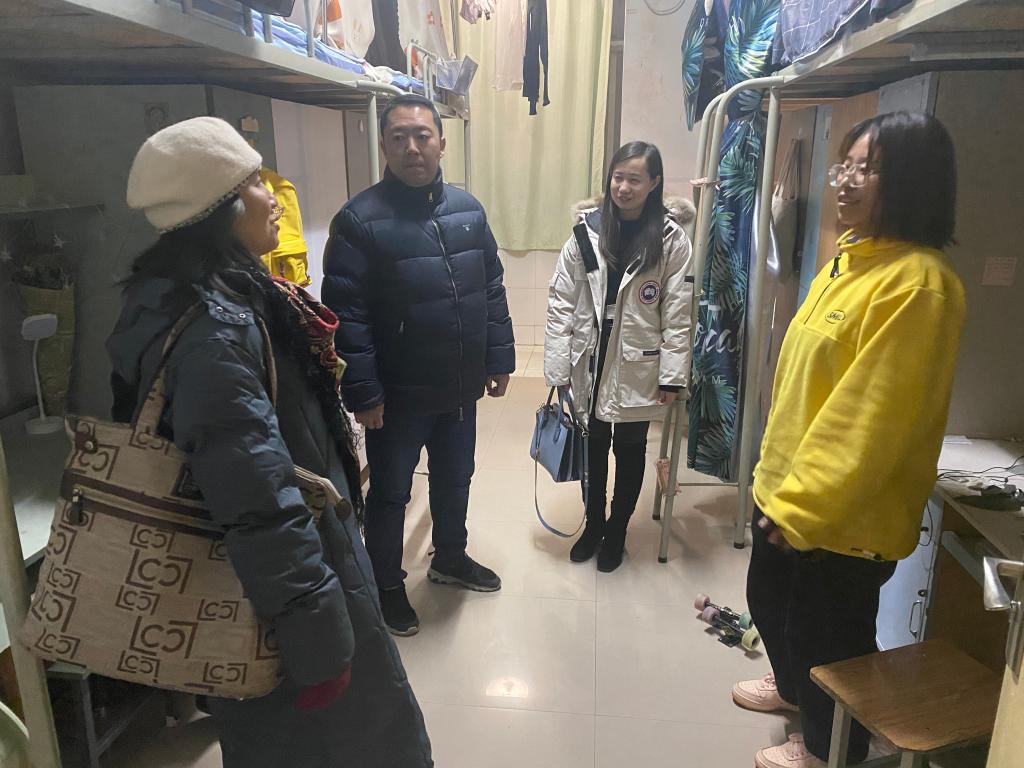 岁末辞旧,万象更新,为使留校员工在温暖中迎接新年,巩固宿舍安全教育。12月31号晚公司党委书记廖敏,党委副书记马小刚,员工管理办公室主任丁亦喆及各年级辅导员走访员工宿,为员工送去辞旧迎新的嘱托与温暖。
