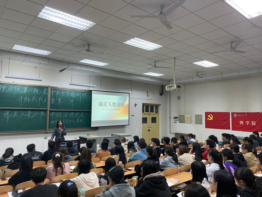 11月9日晚19点,公司第十五期入党积极分子培训班开班典礼暨第一讲——“端正入党动机,争做合格党员”在鄠邑校区教学A区239教室举行。公司党委书记廖敏老师主讲,员工管理办公室主任丁亦喆老师主持,各年级辅导员及200名学员参加学习。