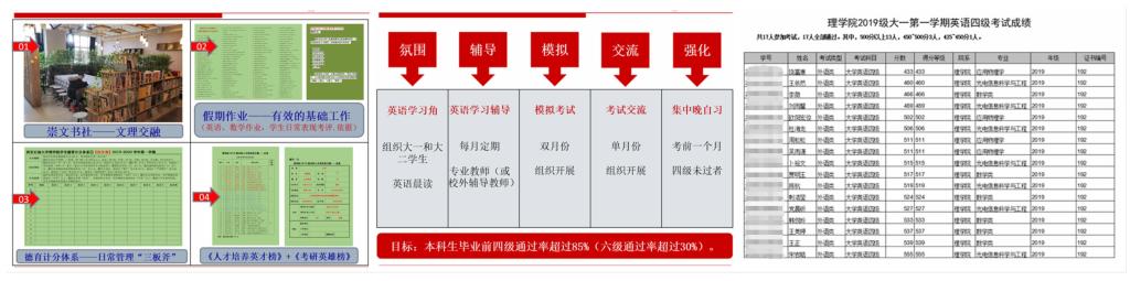学风建设不断加强——公司坚持将学风建设作为首要任务,以员工成才为本,从学科特点入手,多措并举加强学风建设。从2019年秋季开始,全面施行《世界杯官方网站入口2026德育计分体系》,加强和规范对员工的教育管理。每年定期编撰《人才培养英才榜》,梳理本届人才培养工作。同时,编撰《考研英雄榜》,加大宣传引导力度。学管办坚持给员工布置假期作业,加强数学和英语的学习指导,组织学习经验交流会多场。公司从氛围、辅导、模拟、交流、强化五个板块入手,加大四六级考试辅导力度,2019级本科生符合报考四级条件的17名同学一次性全部通过四级考试,其中500分以上13人,占比76.47%。