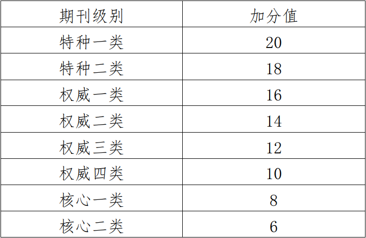 员工本科阶段以独立作者或第一作者在核心及以上学术期刊上发表学术论文,可予以加分,本类加分不得超过20分,具体加分细则见如下表格: