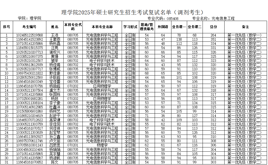 现将公司调剂复试名单予以公布(光电信息工程第一批)。