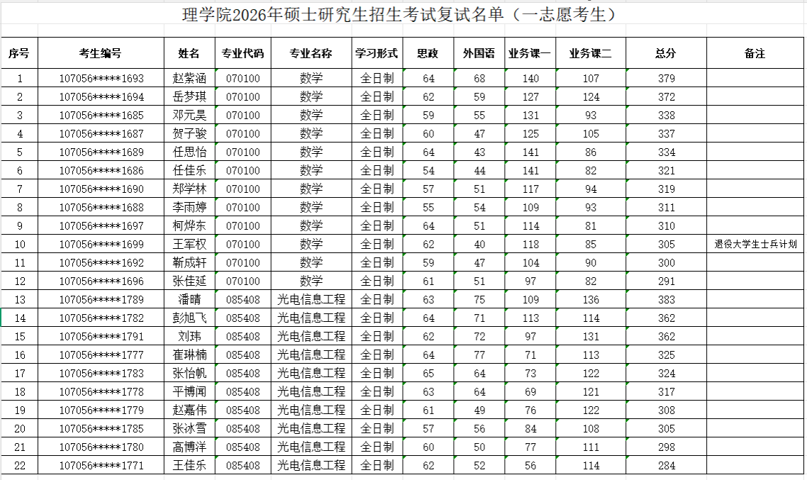 现将公司第一志愿参加复试考生名单予以公布。请参加复试的考生认真学习《世界杯官方网站入口20262026年硕士研究生招生复试录取工作实施细则》,按照相关要求做好参加复试的各项准备工作,具体通知如下: