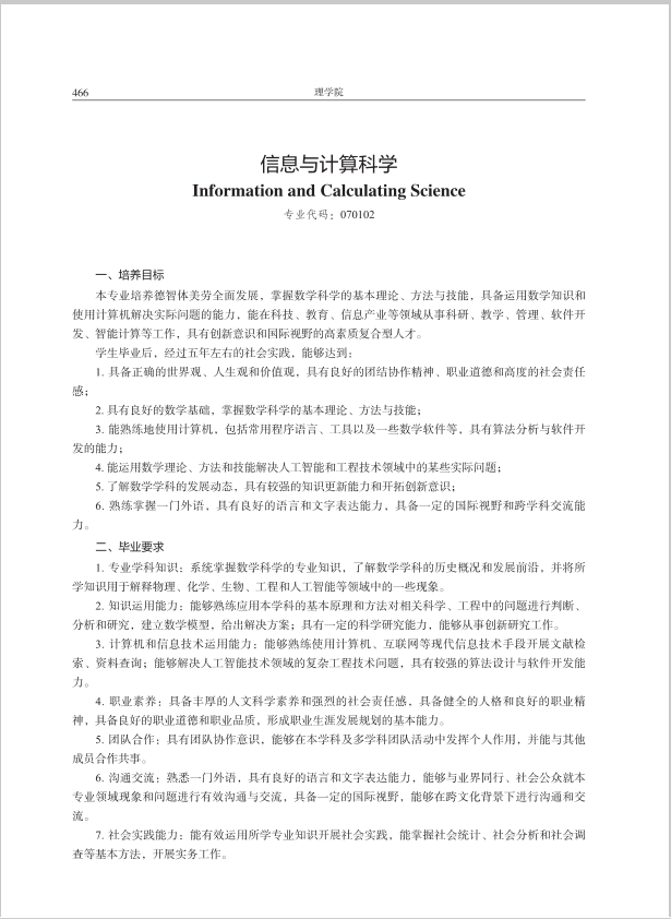 2021版信息与计算科学专业培养方案2022年修订版
