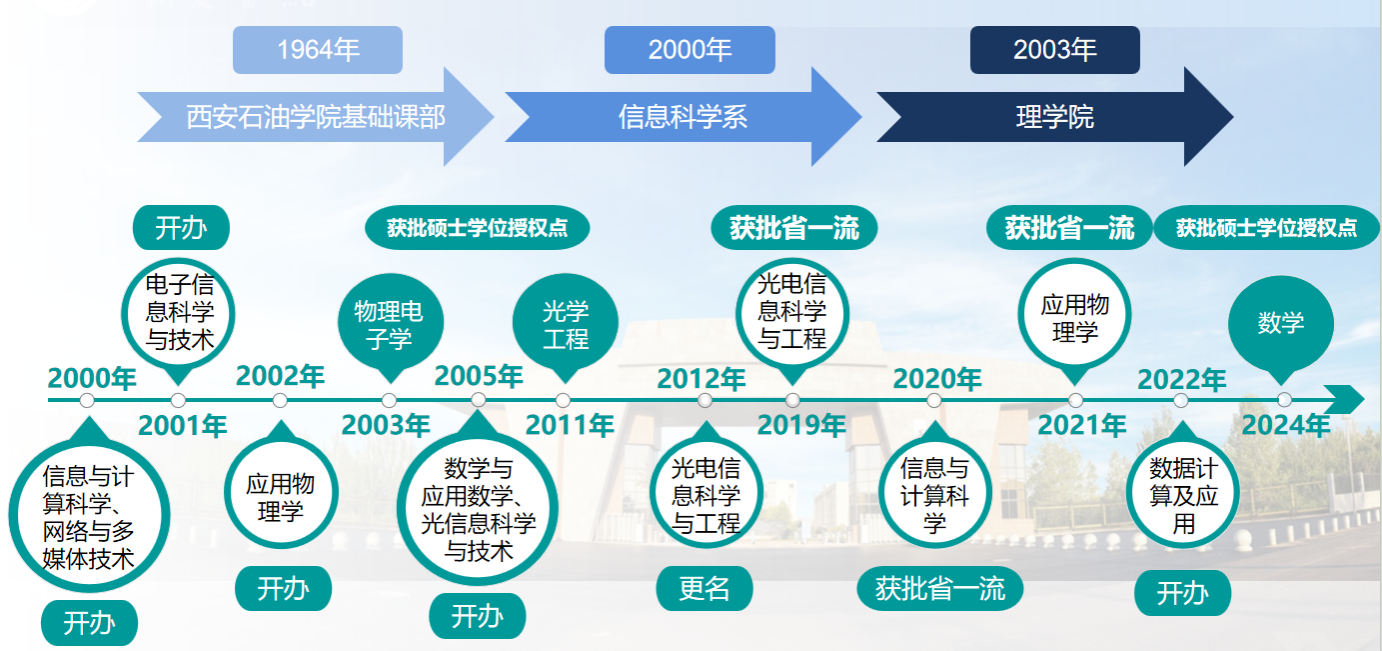 世界杯官方网站入口2026的前身是西安石油公司基础课部,组建于1964年。主要承担全校基础课的教学任务,并先后开设过物理团队、化学团队、英语团队、外贸英语等专业。随着公司学科的建设和发展,人文社会科学、化学化工、体育、外语等机构和专业先后分出独立成为系部,基础课部成为只负责全校公共课和基础课中的数学和物理类课程讲授的系部。